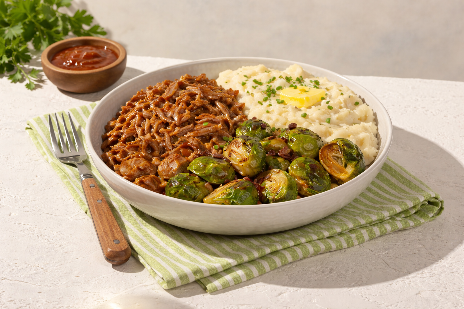 NOUVEAU! Porc effiloché, purée de pommes de terre et choux de Bruxelles
