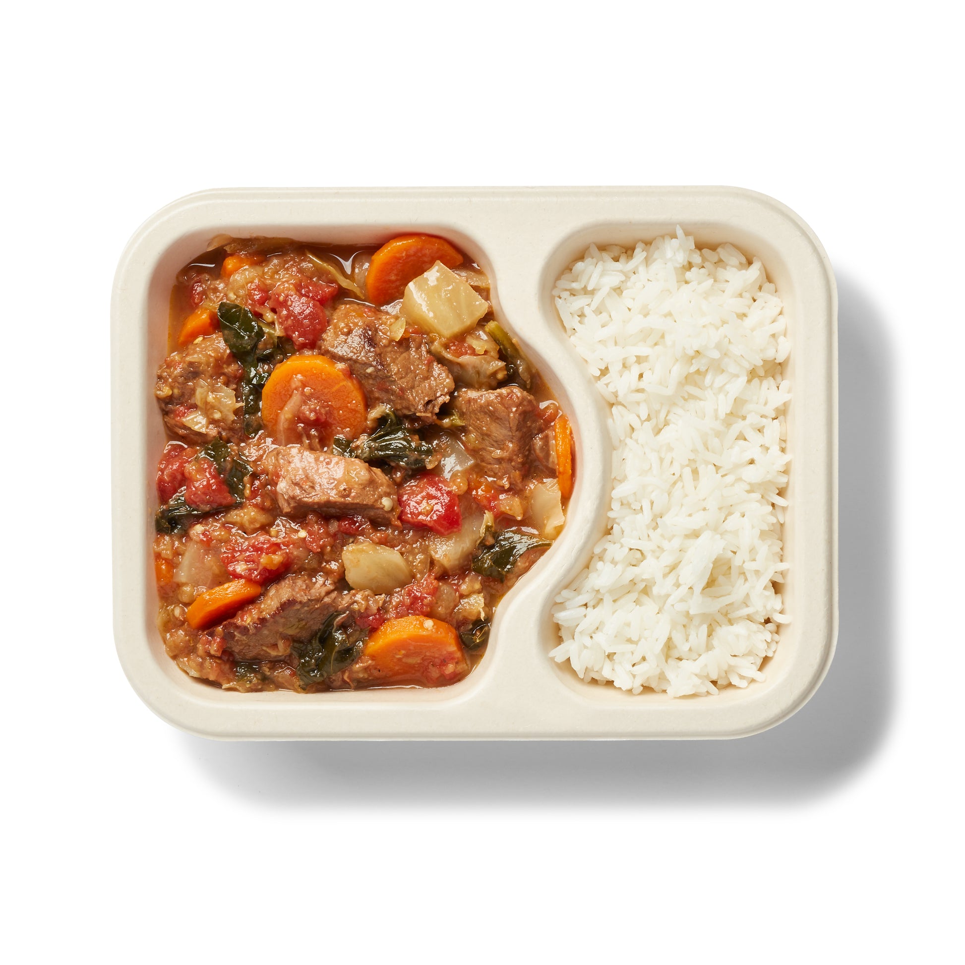 Ragoût de boeuf, aubergine, chou, épinard, chayotte et carotte accompagné de riz blanc