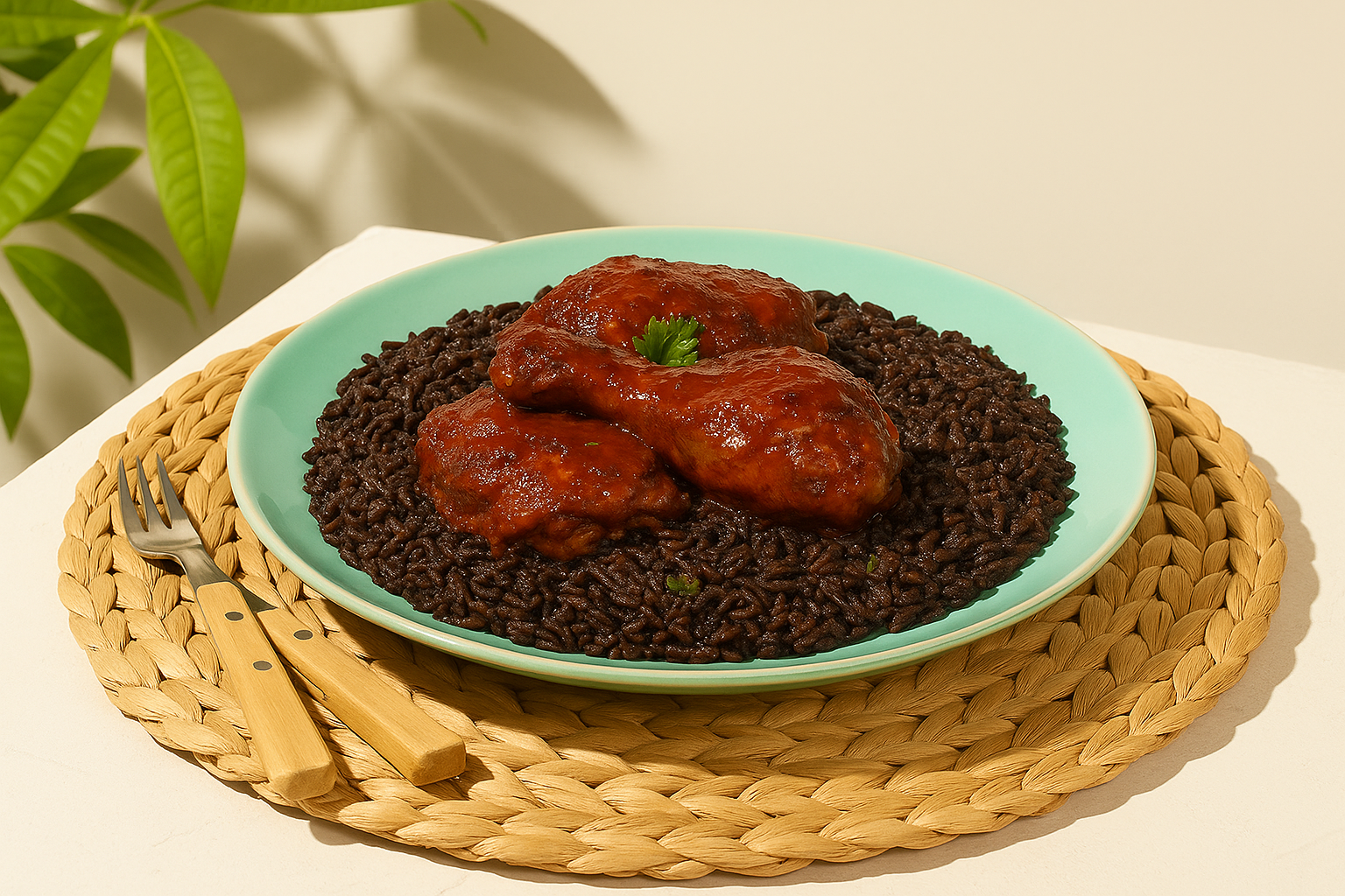 Riz djon djon et poulet en sauce